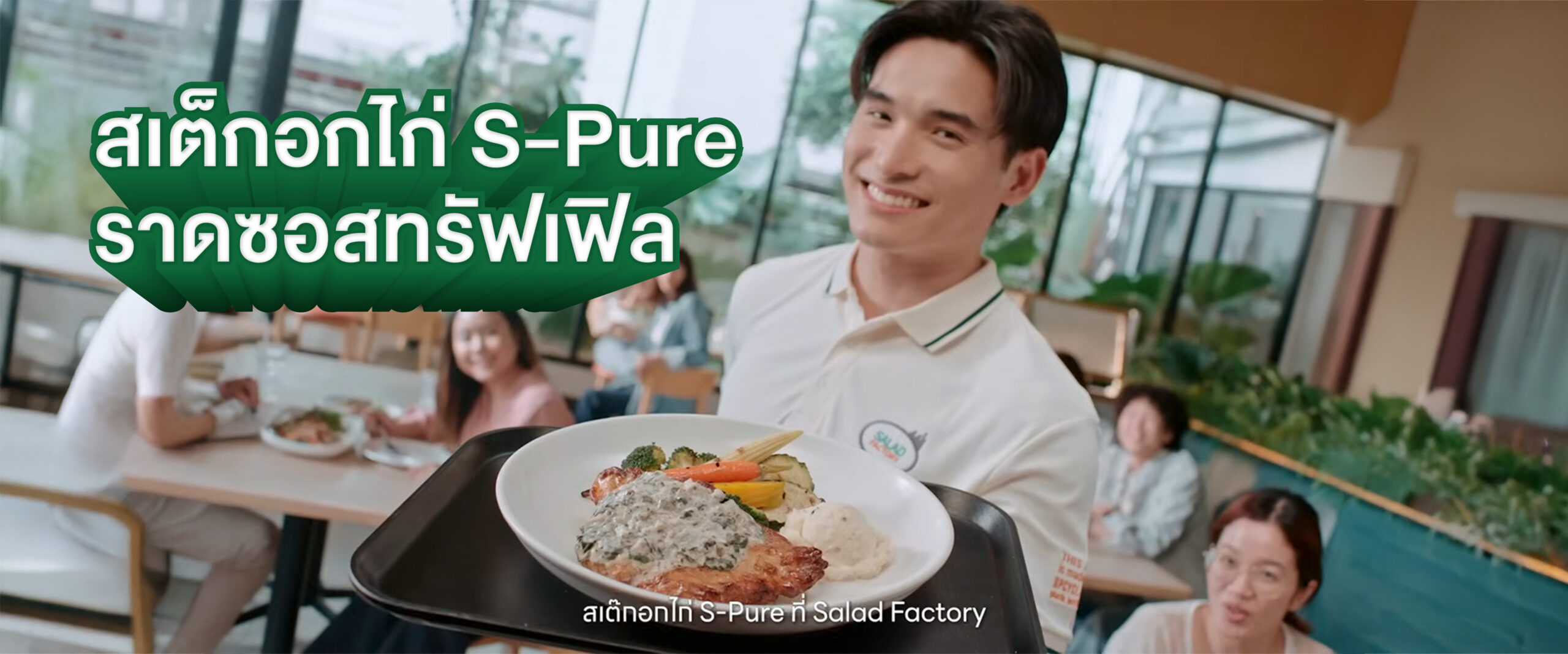 แต่ทั้ง 3 คำนี้ ใช้ไม่ได้กับเมนูพิเศษอย่าง สเต็กอกไก่ย่าง S-Pure ราดซอสทรัฟเฟิล จาก Salad Fcetory